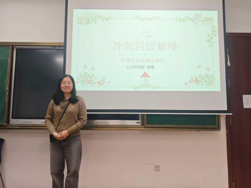 11月25日、26日下午,泰安校区大学英语四级备考讲座如期举行。公共英语部教师颜瑾担任主讲教师,讲座吸引了大批学生积极参与。