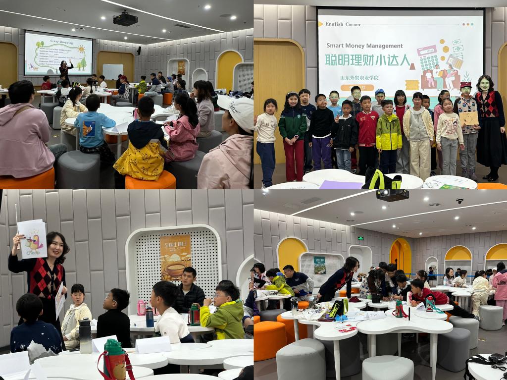 4月11日上午,我院公共英语部在青岛城市展览馆研学空间举行聪明理财小达人主题英语角活动,以场景化、沉浸式方式为青岛市民带来一场趣味与实用兼具的双语体验。